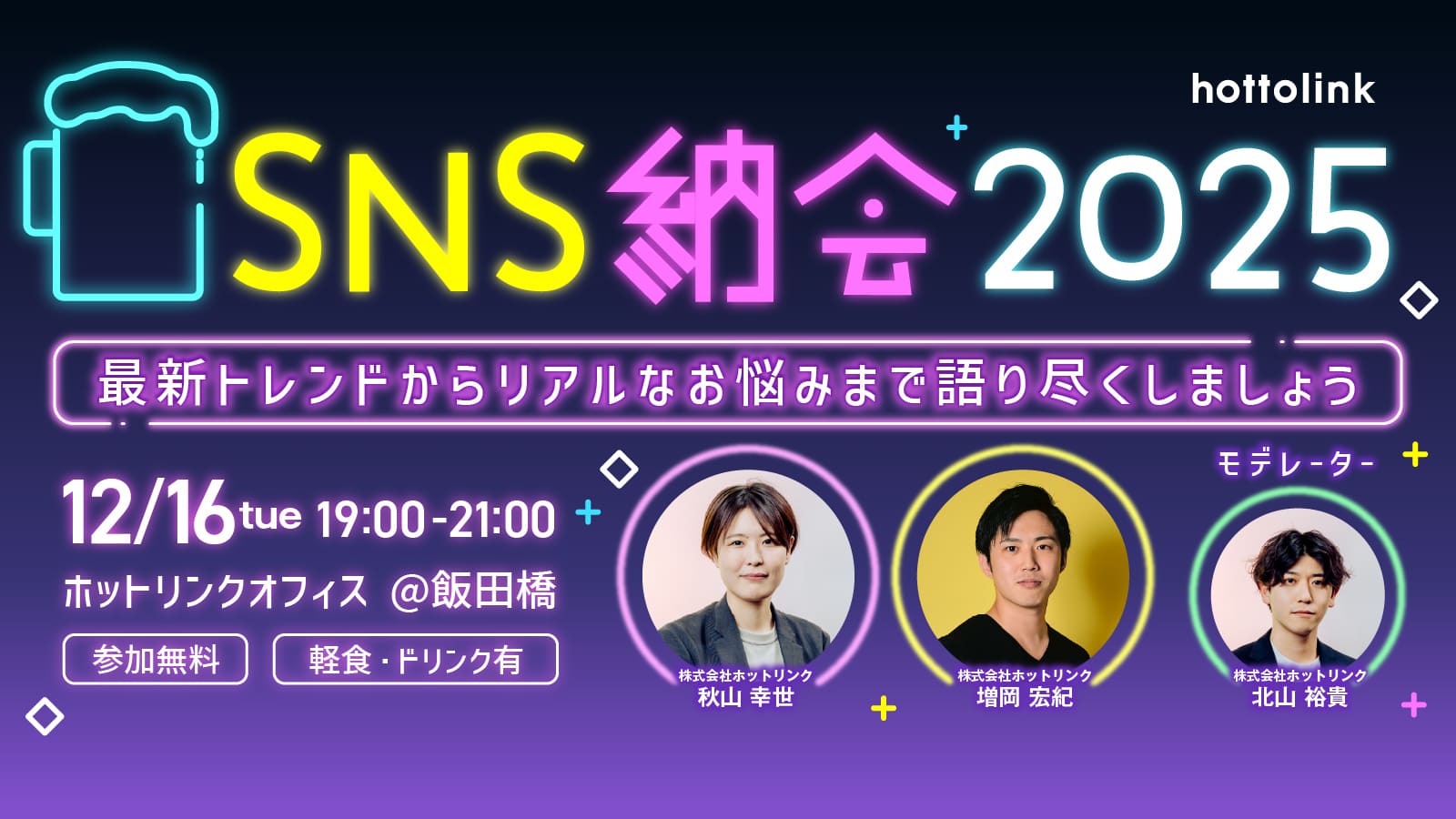 来期のヒントがほしい方、SNS担当者同士でのつながりを作りたい方に。 2025年のラスト、一緒にSNSの未来を語り尽くしませんか?