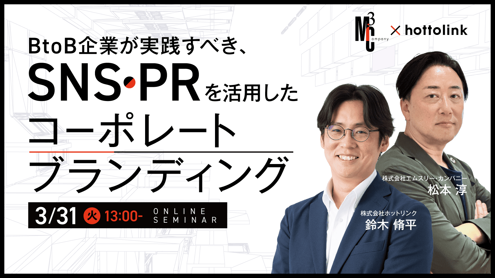 数多くの企業のSNSマーケティングを支援してきたホットリンクと、PRを主戦場にするエムスリー・カンパニー社が、BtoB企業のコーポレートブランディングについてお伝えいたします。