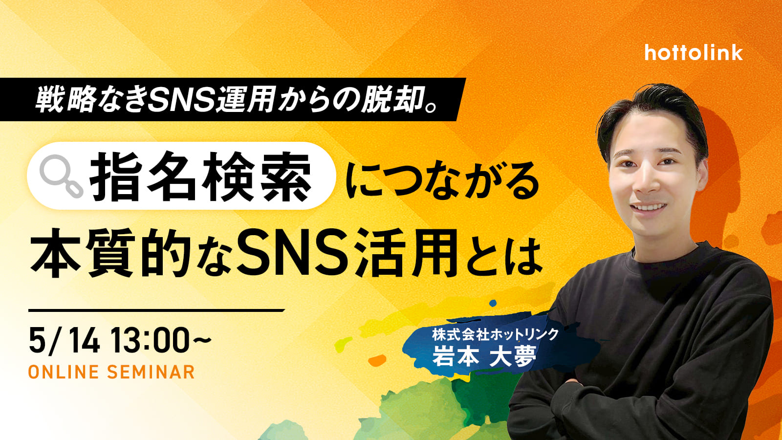 本セミナーでは、SNSを起点にブランドの指名検索数・売上を伸ばした実績のあるホットリンクから岩本が登壇し、指名検索から逆算した本質的なSNS活用の考え方について解説いたします。
