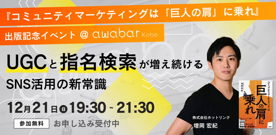 当社コンサルティング営業本部 本部長・増岡が、書籍『コミュニティマーケティングは「巨人の肩」に乗れ~UGCと指名検索が増え続けるSNS活用の新常識~』の出版記念イベントに登壇します。
