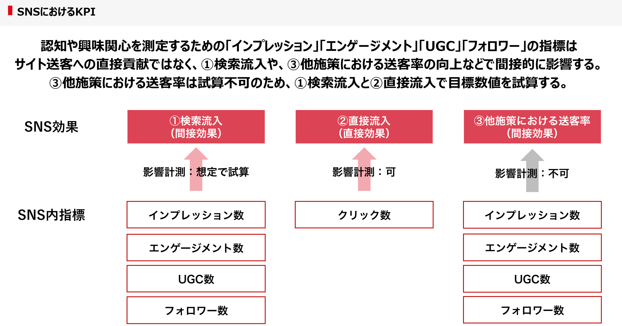 SNSを活用したマーケティングは「SNS運用が目的」ではなく、「SNSを活用して売上など上流のKGIに貢献することが目的」となります。